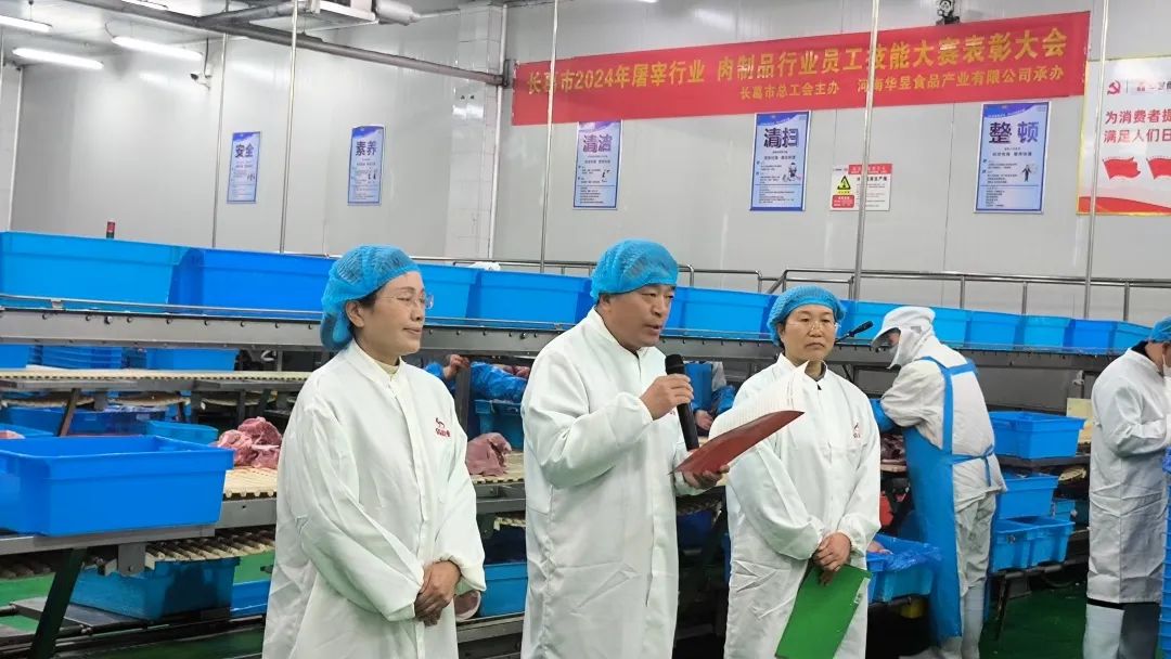11月29日,由长葛市总工会主办、河南华昱食品产业有限公司承办的2024年长葛市屠宰行业职工分割技能大赛、肉制品行业职工技能大赛成功举办。长葛市总工会党组书记刘文峰、女工委主任王秋红、劳动和经济工作部李琦等领导出席,公司副总经理王娟主持活动。