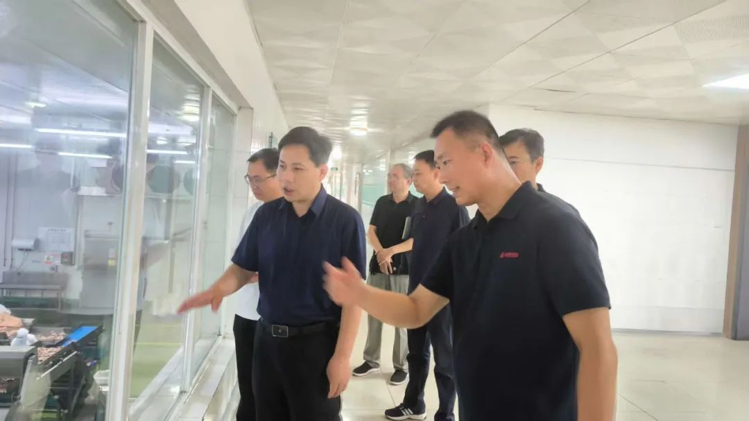 在公司总经理刘朝阳的陪同下,朱正宏庭长一行先后参观了华昱新零售众品优食、生鲜品加工基地和肉制品生产基地,详细了解了公司的产品结构、产业布局及整体发展情况。调研过程中,朱正宏庭长重点关切了公司在就业带动、生产规模、经营效益等方面的具体进展。